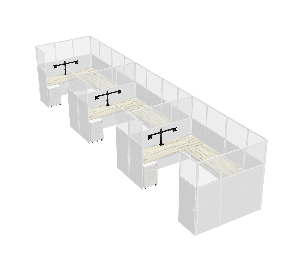 Heinne Holz U-shaped Panel System For 3 Person + Monitor Arm (double Arms) + Metal Mobile Drawers For 3 User(s)
