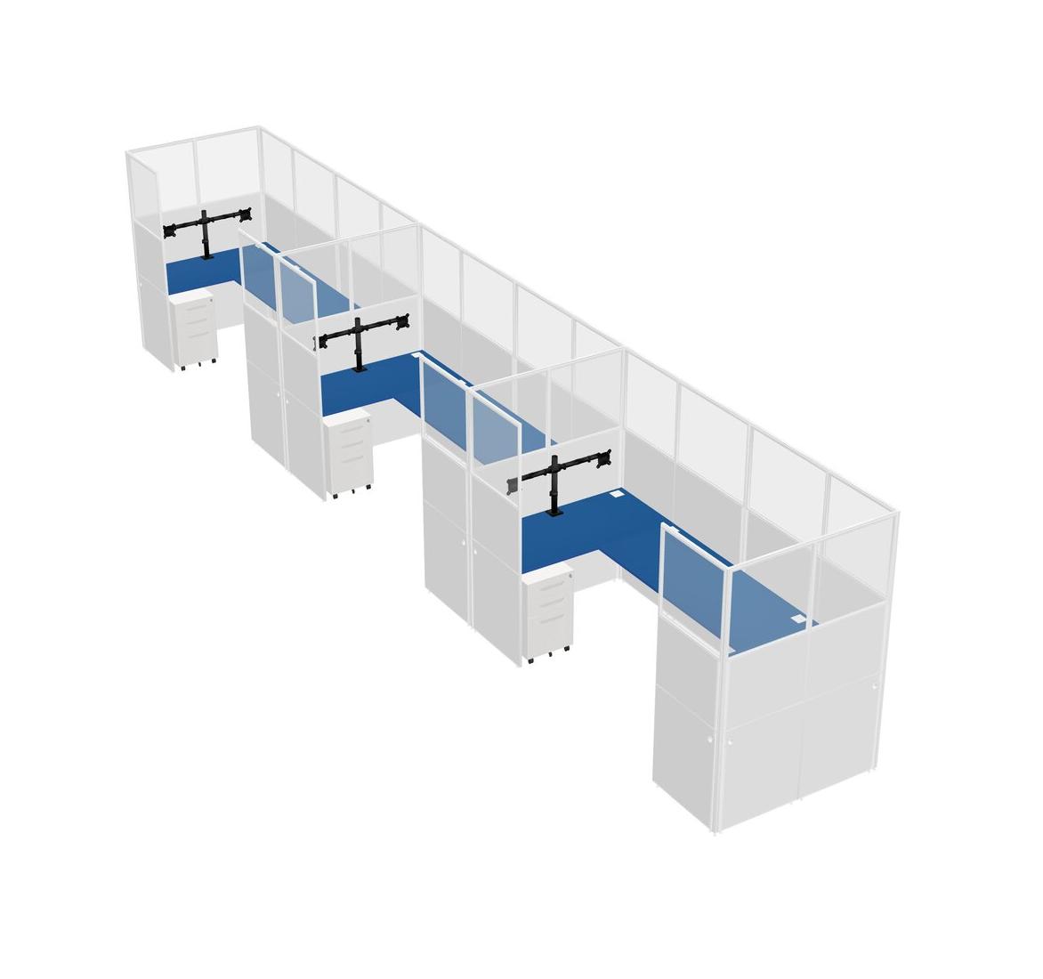 Prism Blue U-shaped Panel System For 3 Person + Monitor Arm (double Arms) + Metal Mobile Drawers For 3 User(s)
