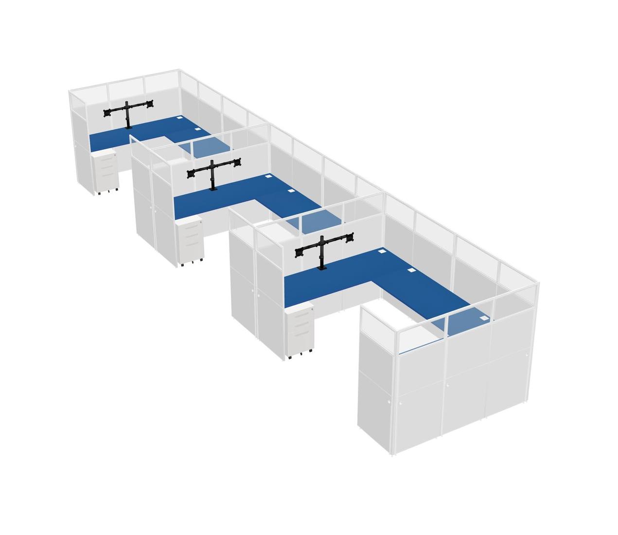 Prism Blue U-shaped Panel System For 3 Person + Monitor Arm (double Arms) + Metal Mobile Drawers For 3 User(s)