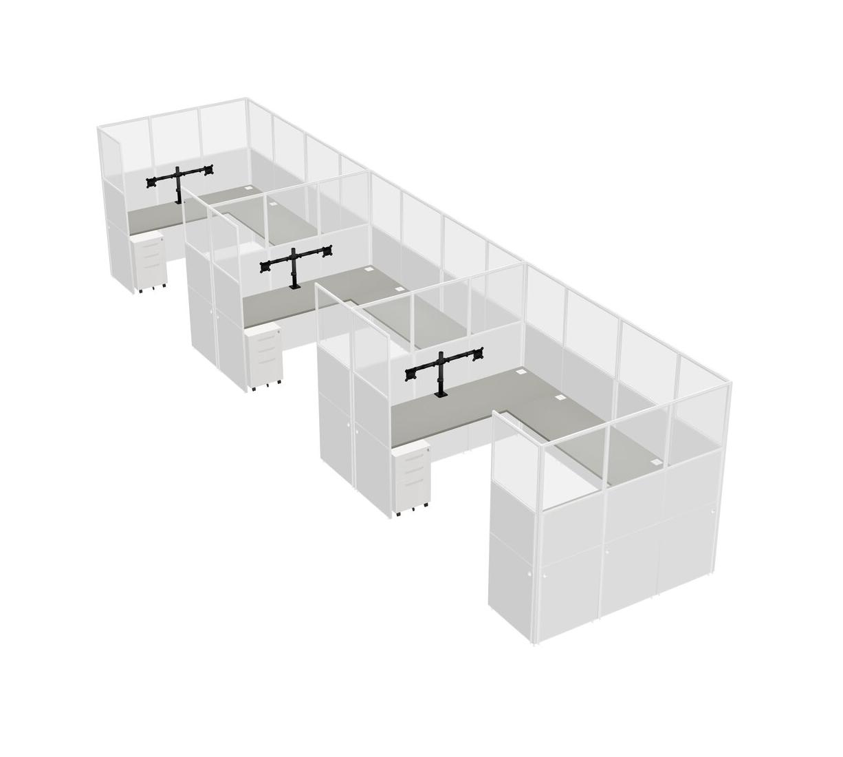 Grey Shadows U-shaped Panel System For 3 Person + Monitor Arm (double Arms) + Metal Mobile Drawers For 3 User(s)