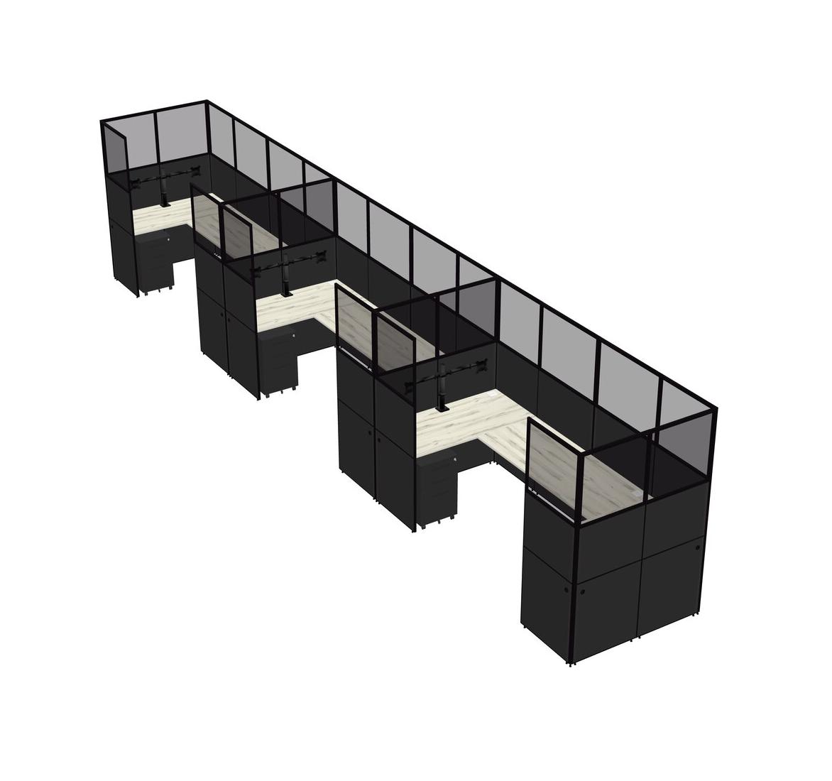Heinne Holz U-shaped Panel System For 3 Person + Monitor Arm (double Arms) + Metal Mobile Drawers For 3 User(s)
