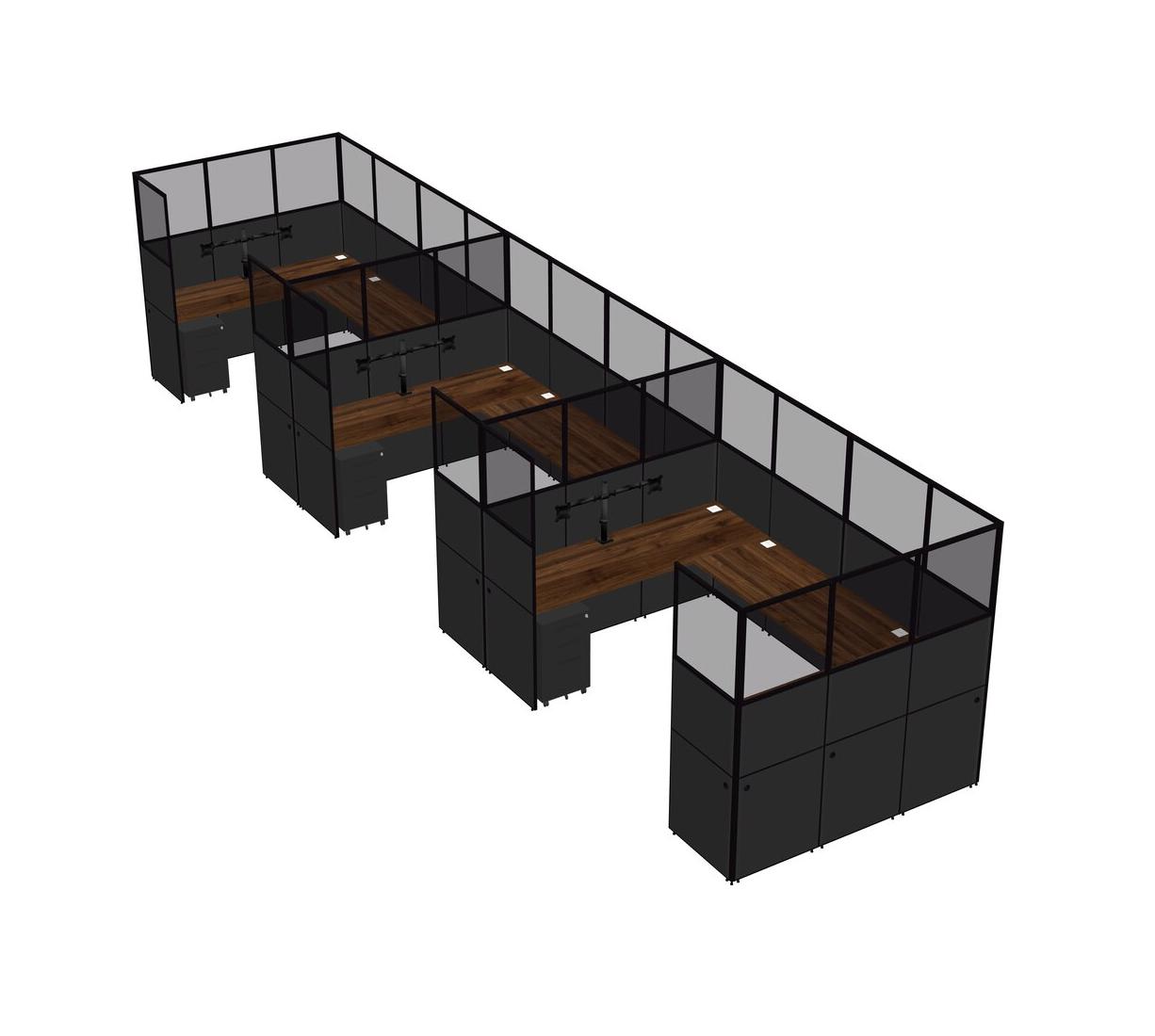 Columbia Walnut U-shaped Panel System For 3 Person + Monitor Arm (double Arms) + Metal Mobile Drawers For 3 User(s)