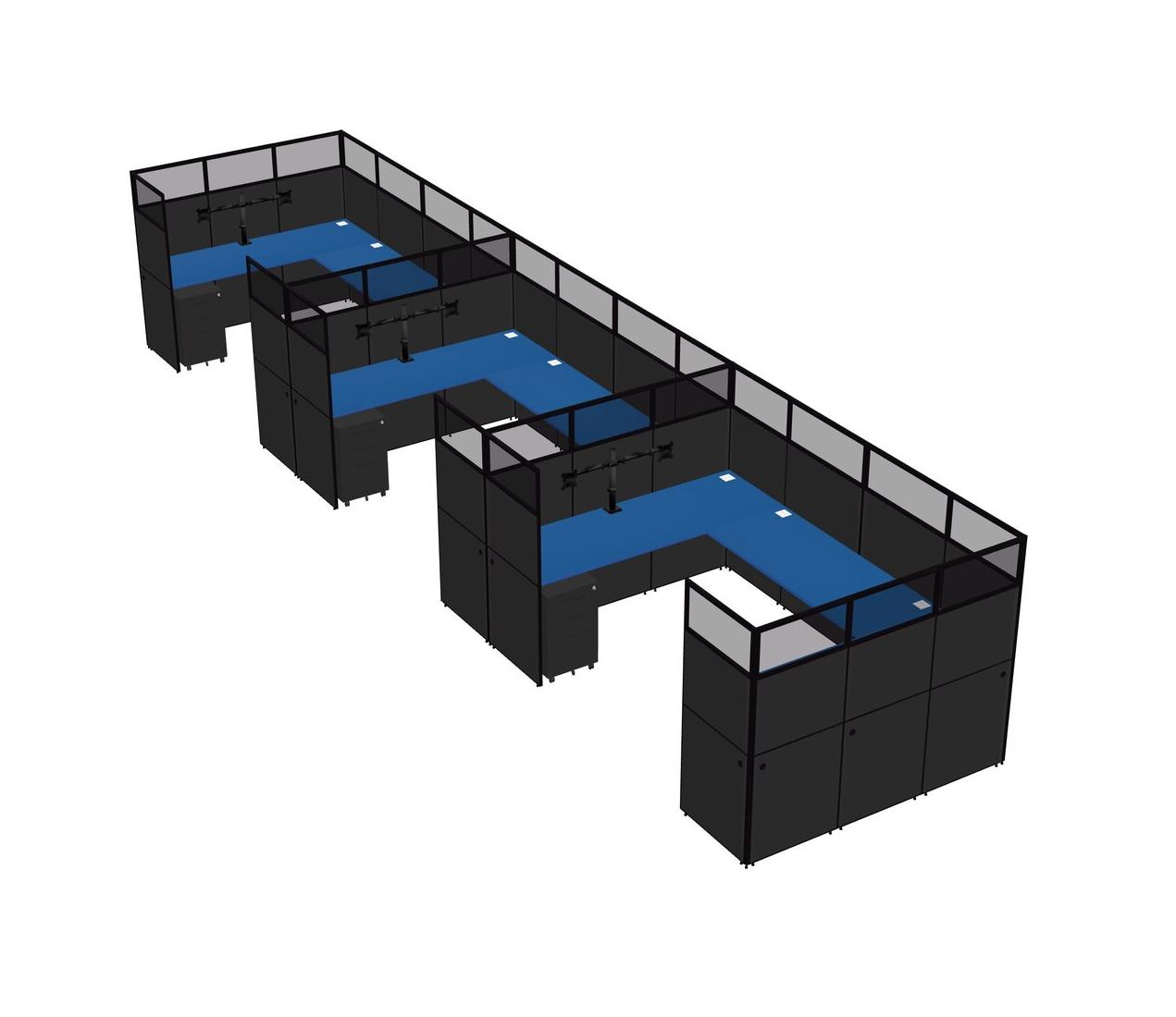 Prism Blue U-shaped Panel System For 3 Person + Monitor Arm (double Arms) + Metal Mobile Drawers For 3 User(s)