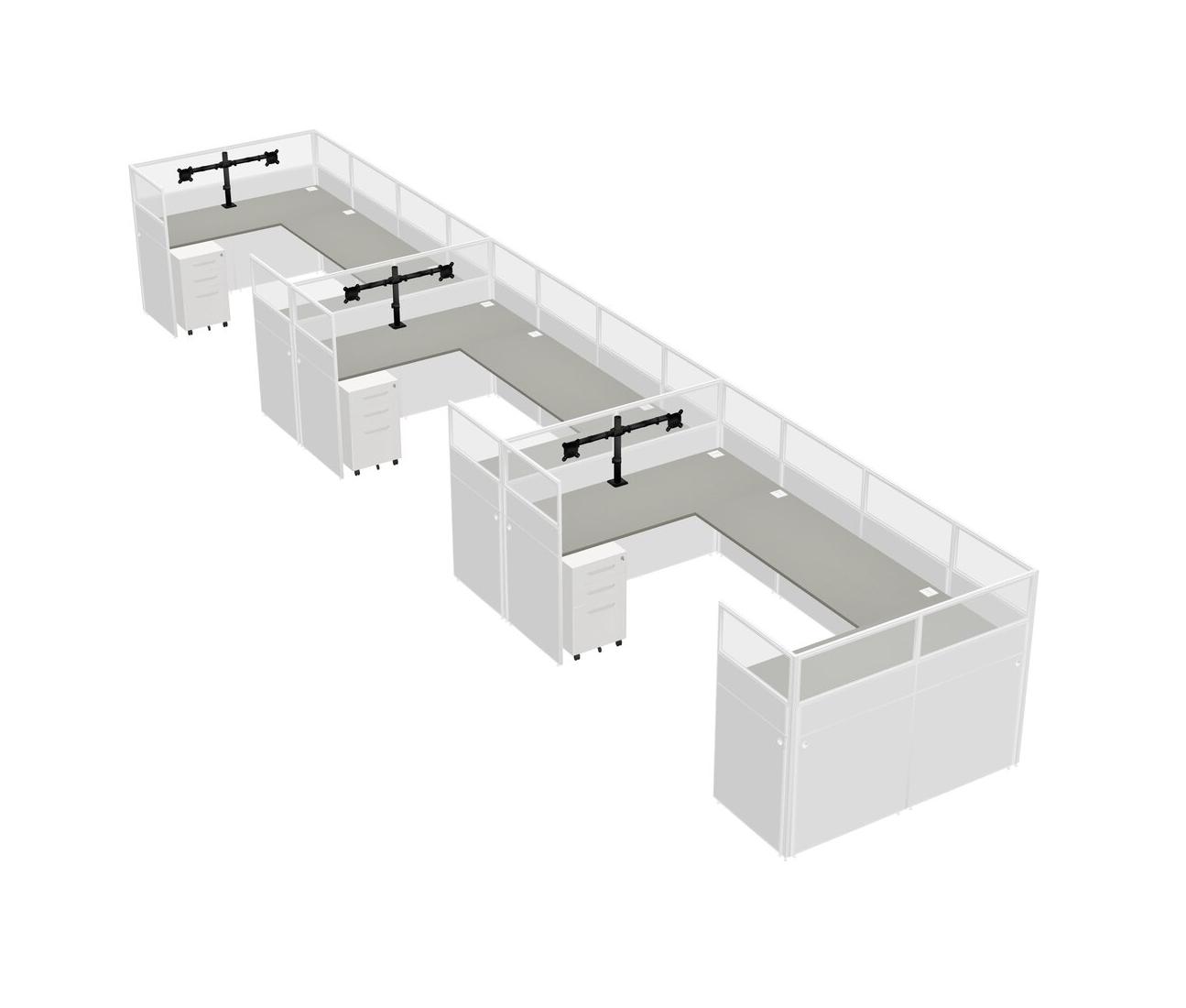 Grey Shadows U-shaped Panel System For 3 Person + Monitor Arm (double Arms) + Metal Mobile Drawers For 3 User(s)