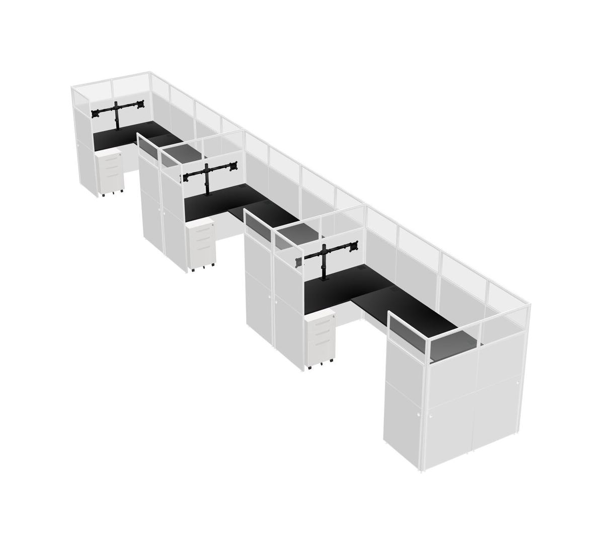 Black U-shaped Panel System For 3 Person + Monitor Arm (double Arms) + Metal Mobile Drawers For 3 User(s)