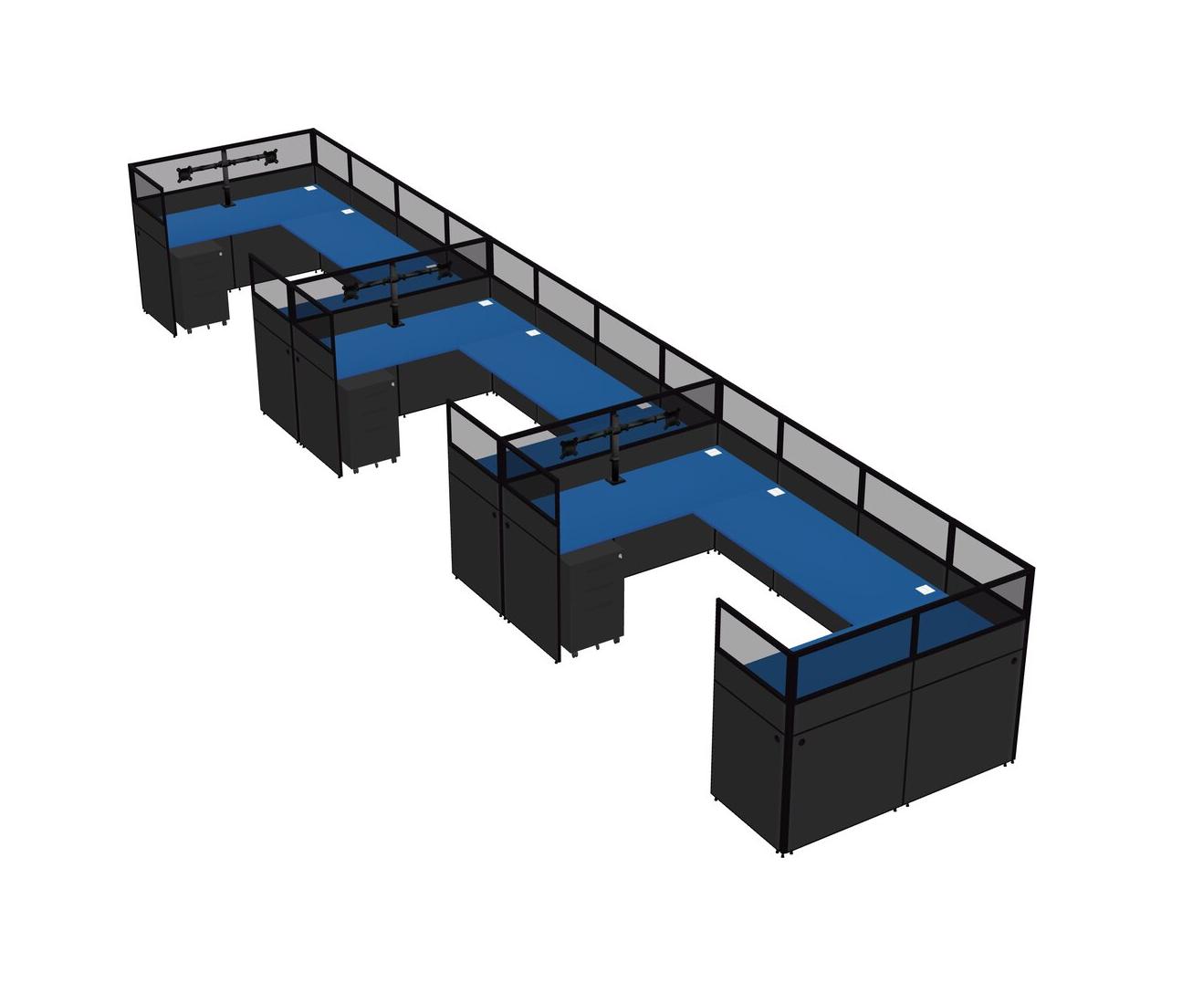 Prism Blue U-shaped Panel System For 3 Person + Monitor Arm (double Arms) + Metal Mobile Drawers For 3 User(s)