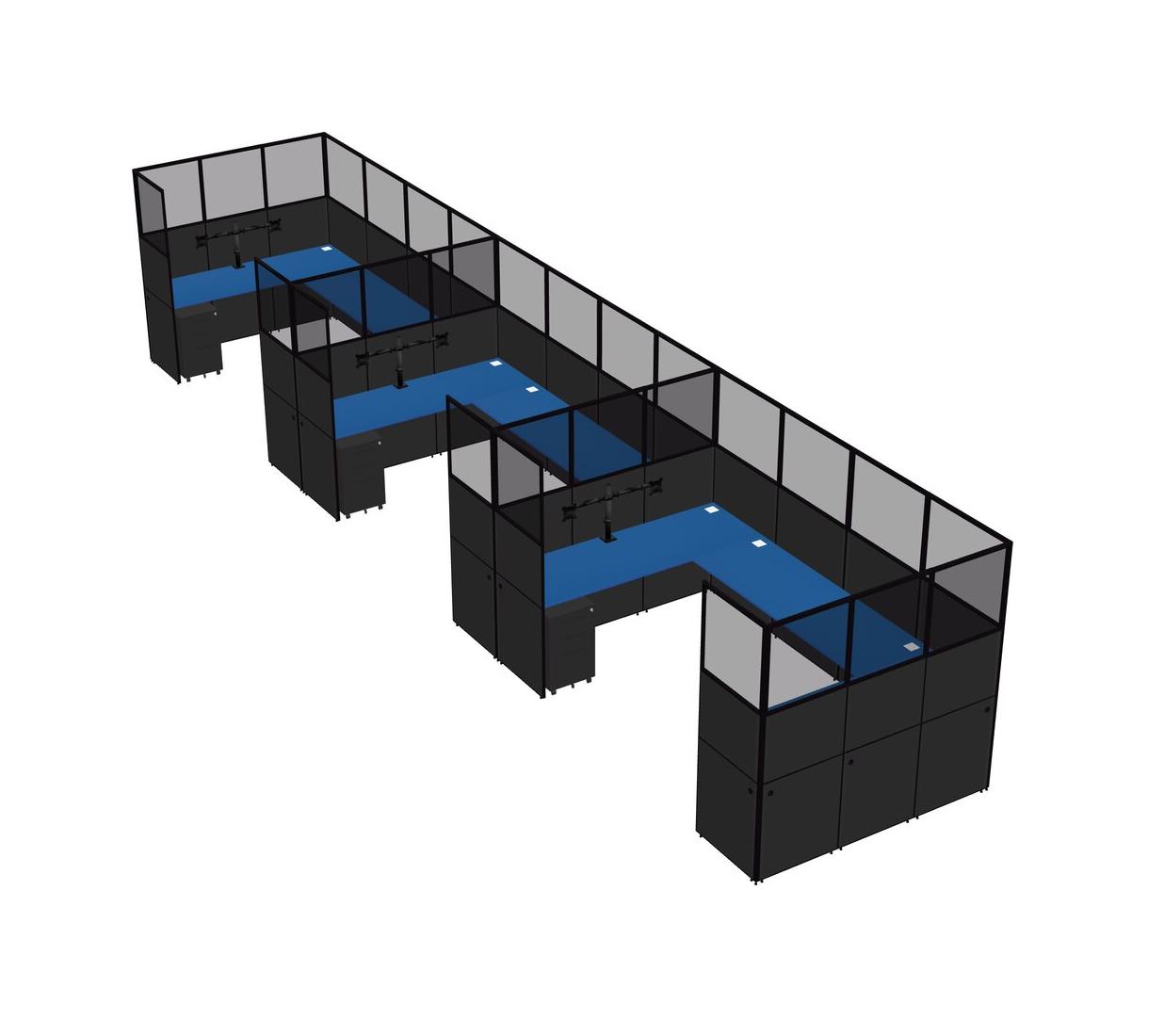 Prism Blue U-shaped Panel System For 3 Person + Monitor Arm (double Arms) + Metal Mobile Drawers For 3 User(s)