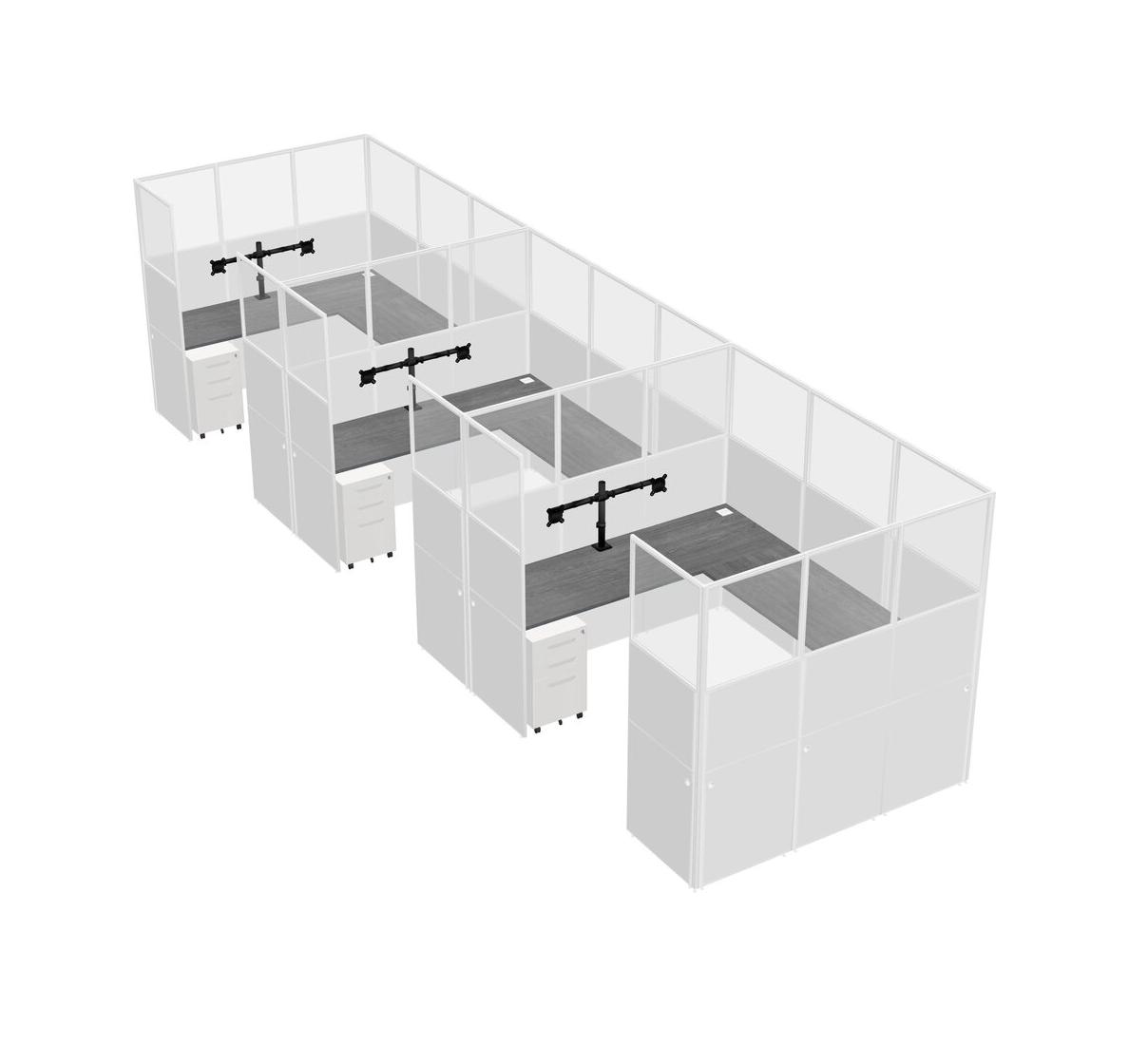 Grey U-shaped Panel System For 3 Person + Monitor Arm (double Arms) + Metal Mobile Drawers For 3 User(s)