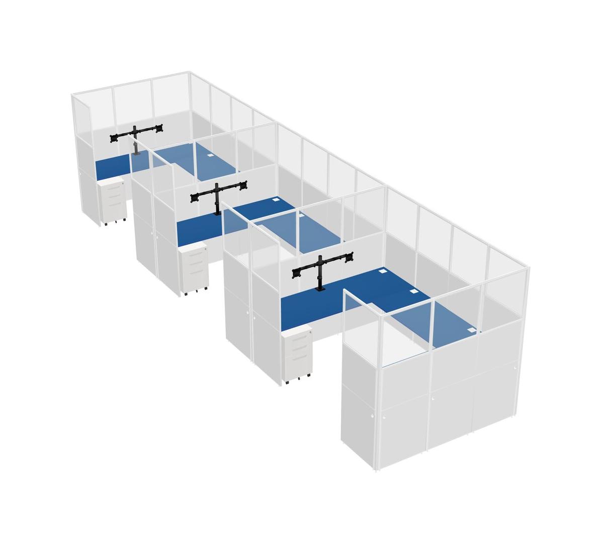 Prism Blue U-shaped Panel System For 3 Person + Monitor Arm (double Arms) + Metal Mobile Drawers For 3 User(s)