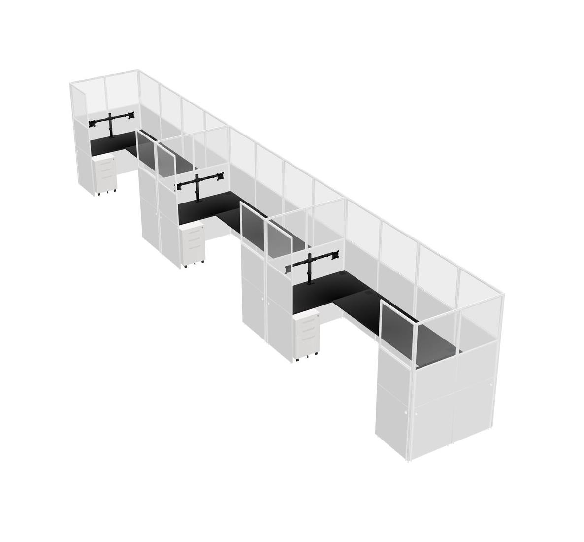 Black U-shaped Panel System For 3 Person + Monitor Arm (double Arms) + Metal Mobile Drawers For 3 User(s)