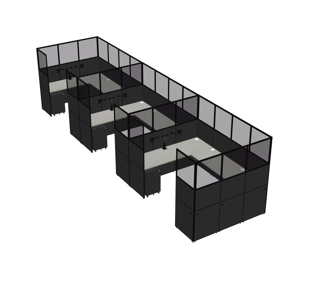 Grey Shadows U-shaped Panel System For 3 Person + Monitor Arm (double Arms) + Metal Mobile Drawers For 3 User(s)