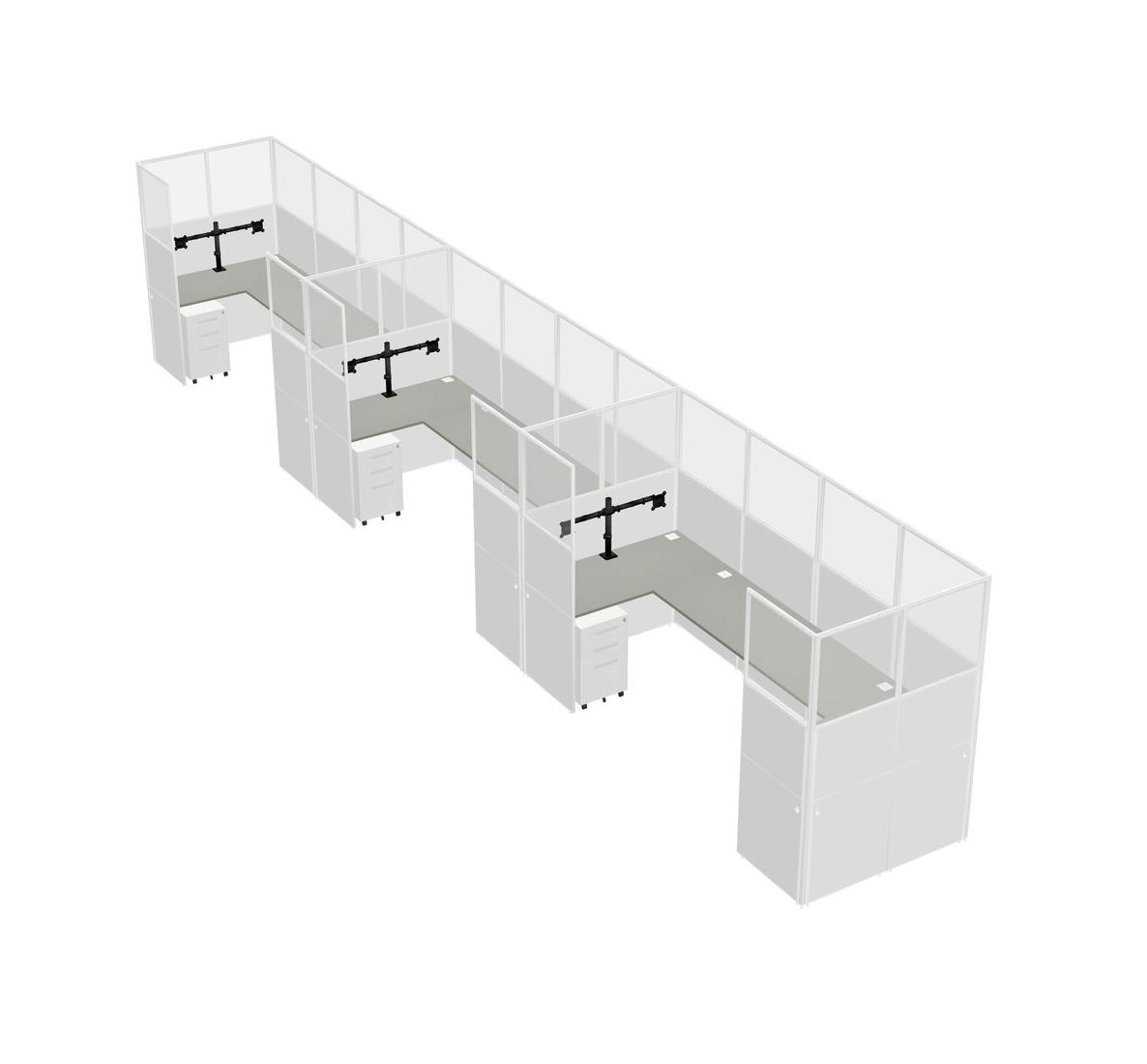 Grey Shadows U-shaped Panel System For 3 Person + Monitor Arm (double Arms) + Metal Mobile Drawers For 3 User(s)