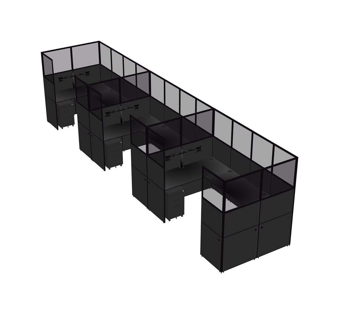 Black U-shaped Panel System For 3 Person + Monitor Arm (double Arms) + Metal Mobile Drawers For 3 User(s)