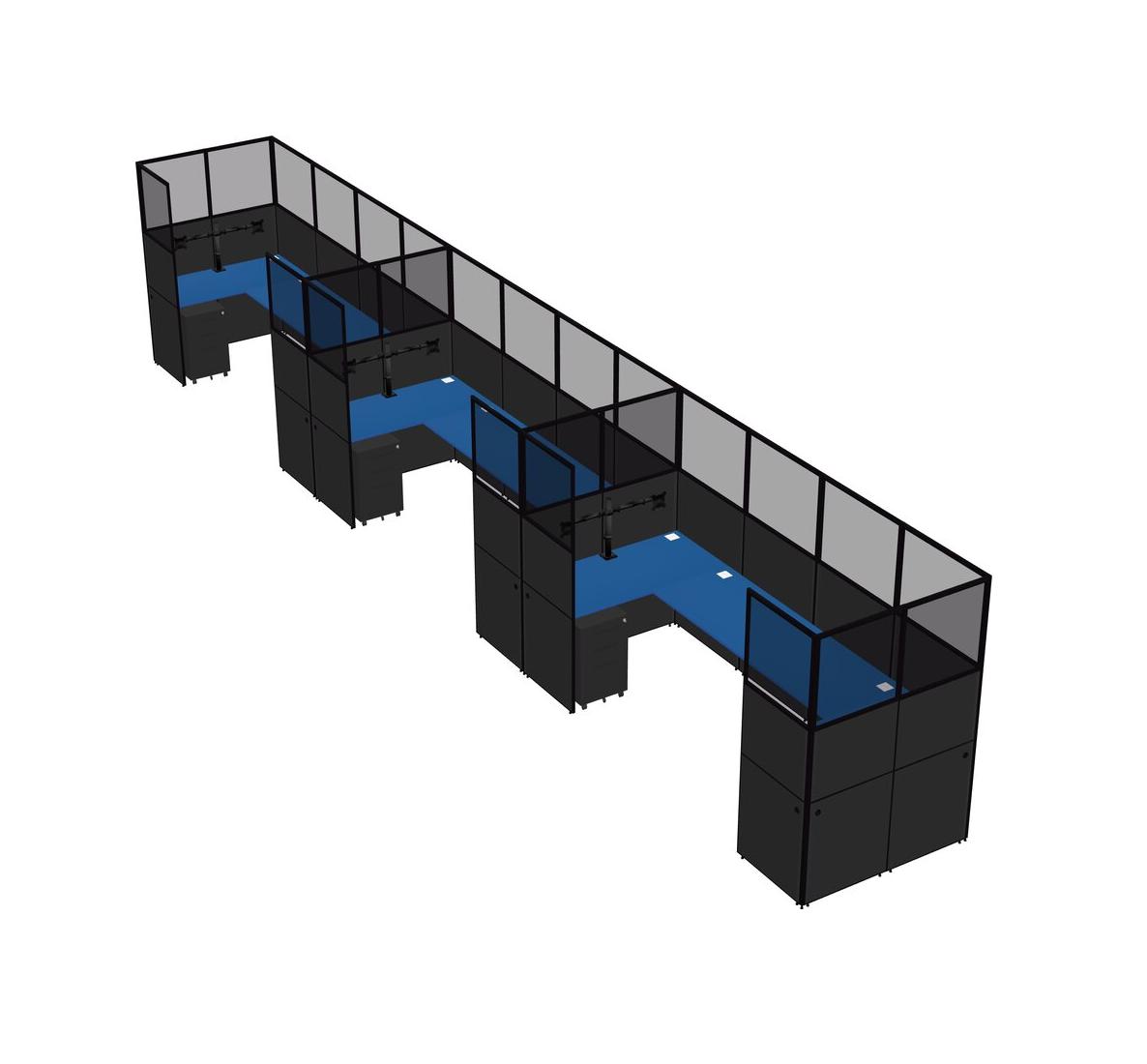 Prism Blue U-shaped Panel System For 3 Person + Monitor Arm (double Arms) + Metal Mobile Drawers For 3 User(s)