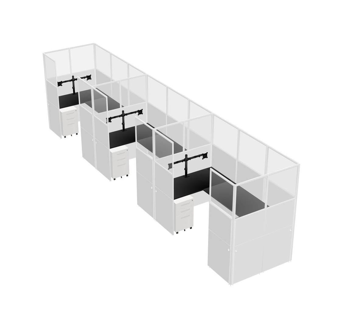 Black U-shaped Panel System For 3 Person + Monitor Arm (double Arms) + Metal Mobile Drawers For 3 User(s)