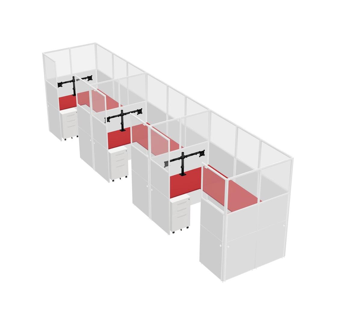 Prism Red U-shaped Panel System For 3 Person + Monitor Arm (double Arms) + Metal Mobile Drawers For 3 User(s)