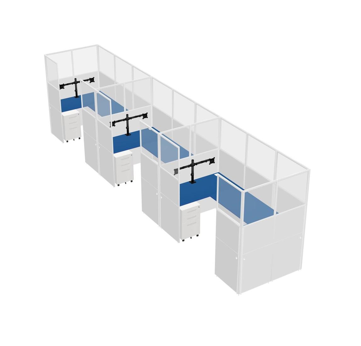 Prism Blue U-shaped Panel System For 3 Person + Monitor Arm (double Arms) + Metal Mobile Drawers For 3 User(s)