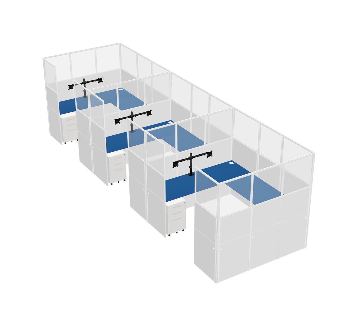 Prism Blue U-shaped Panel System For 3 Person + Monitor Arm (double Arms) + Metal Mobile Drawers For 3 User(s)