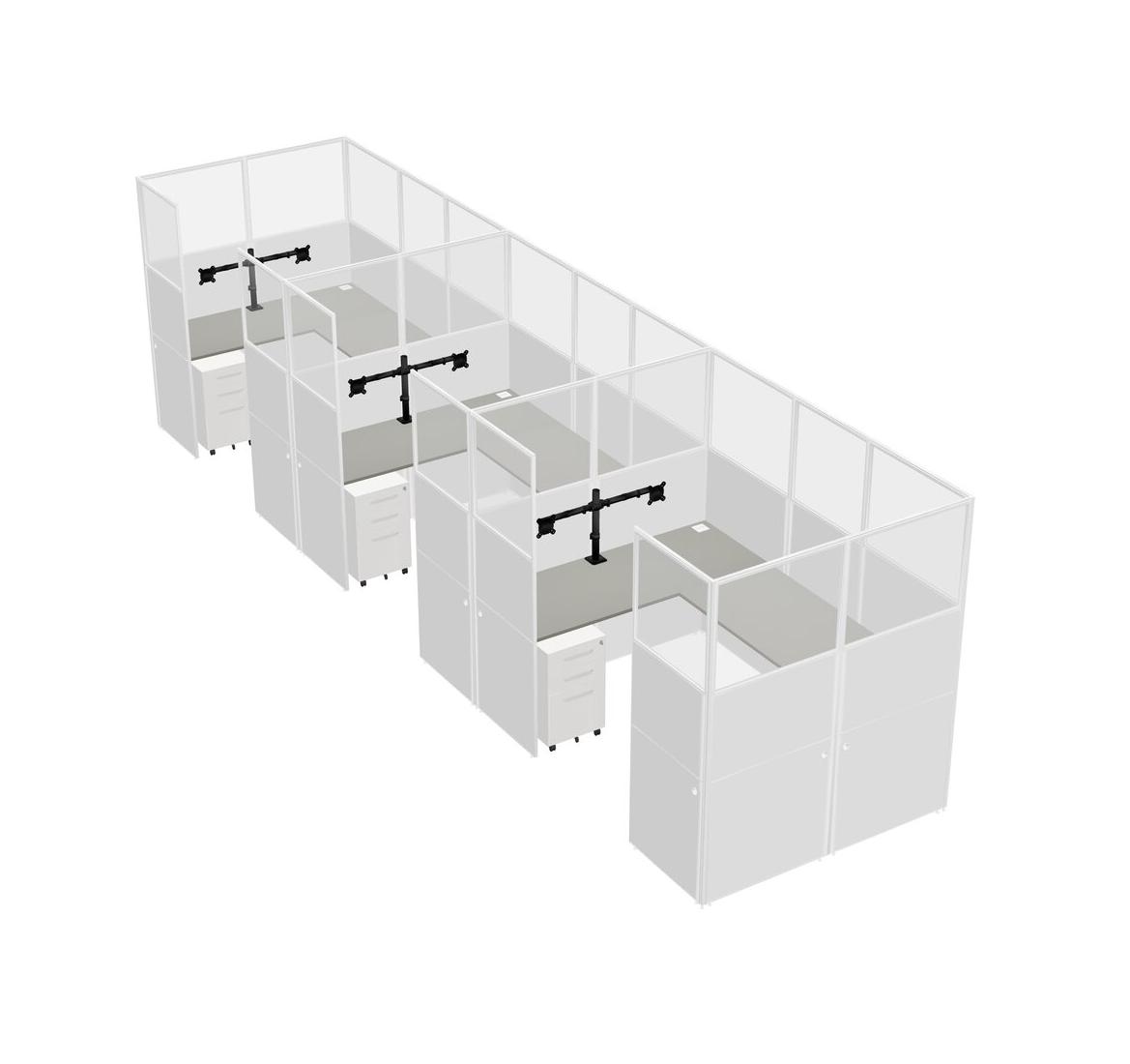 Grey Shadows U-shaped Panel System For 3 Person + Monitor Arm (double Arms) + Metal Mobile Drawers For 3 User(s)