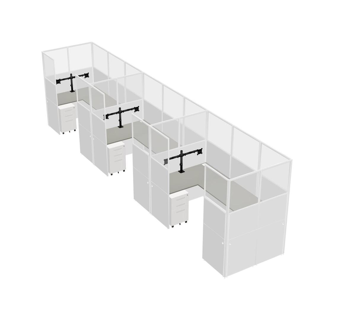 Grey Shadows U-shaped Panel System For 3 Person + Monitor Arm (double Arms) + Metal Mobile Drawers For 3 User(s)