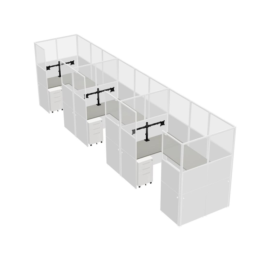 Grey Shadows U-shaped Panel System For 3 Person + Monitor Arm (double Arms) + Metal Mobile Drawers For 3 User(s)