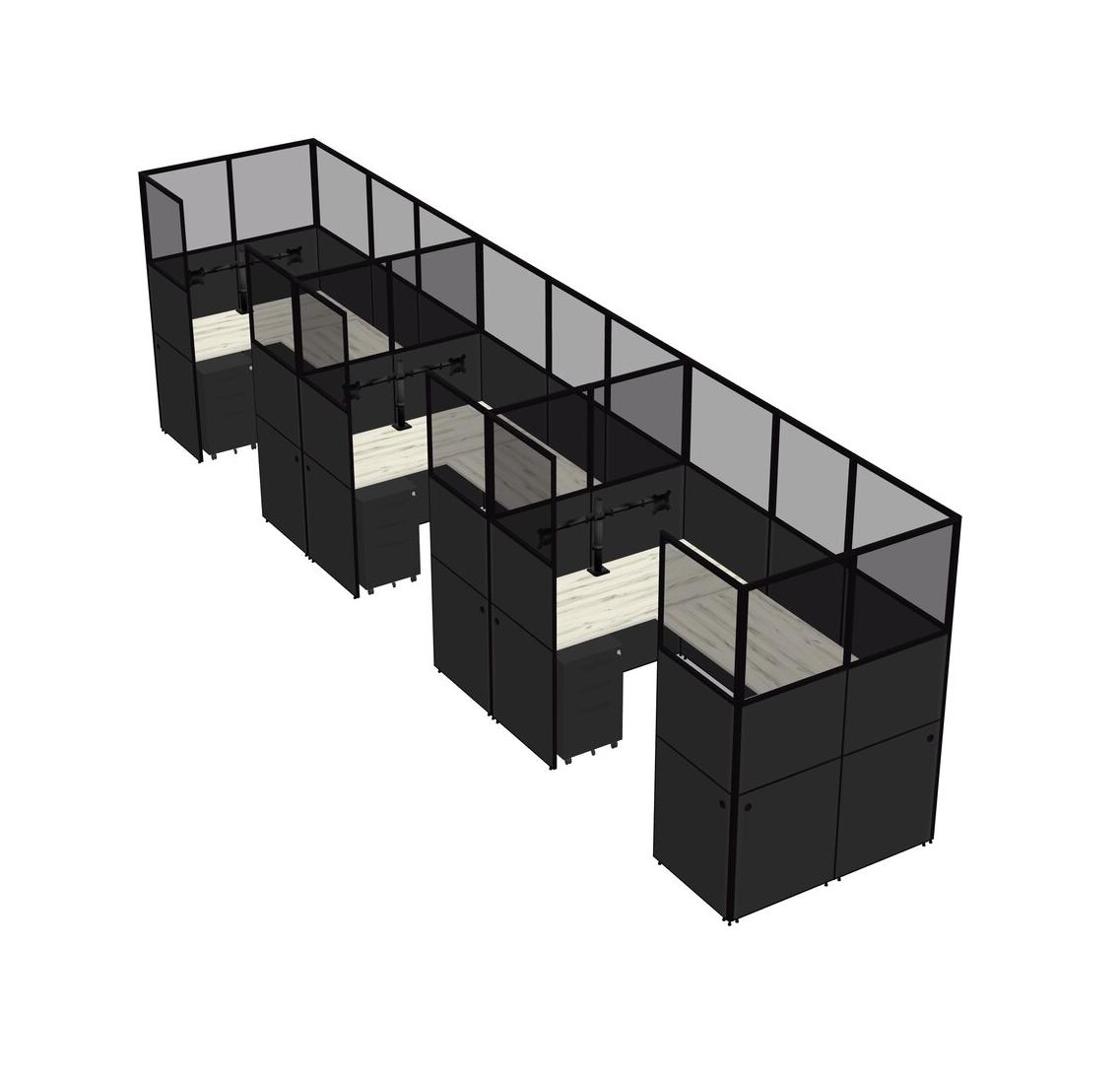Heinne Holz U-shaped Panel System For 3 Person + Monitor Arm (double Arms) + Metal Mobile Drawers For 3 User(s)