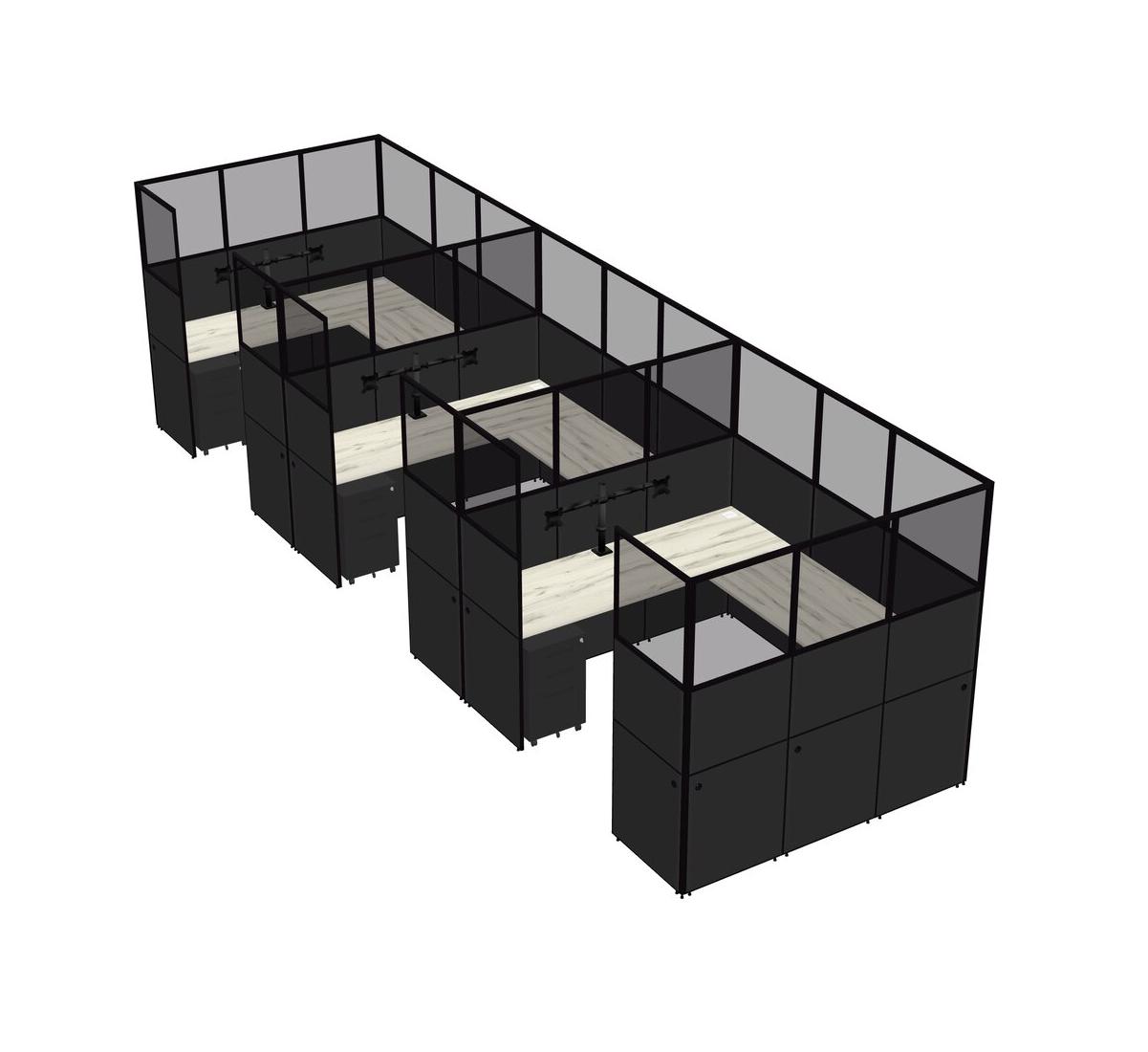 Heinne Holz U-shaped Panel System For 3 Person + Monitor Arm (double Arms) + Metal Mobile Drawers For 3 User(s)