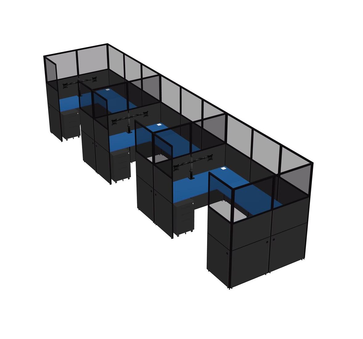 Prism Blue U-shaped Panel System For 3 Person + Monitor Arm (double Arms) + Metal Mobile Drawers For 3 User(s)