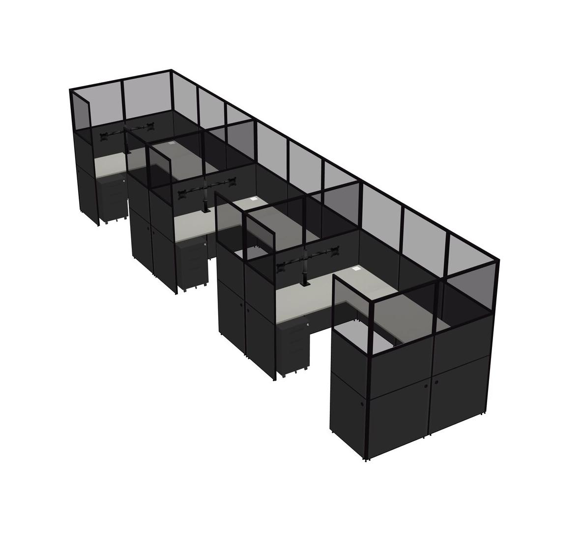 Grey Shadows U-shaped Panel System For 3 Person + Monitor Arm (double Arms) + Metal Mobile Drawers For 3 User(s)