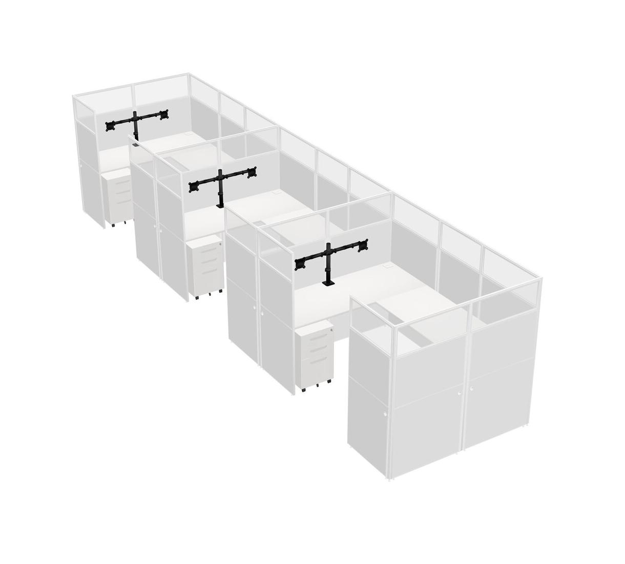 White U-shaped Panel System For 3 Person + Monitor Arm (double Arms) + Metal Mobile Drawers For 3 User(s)
