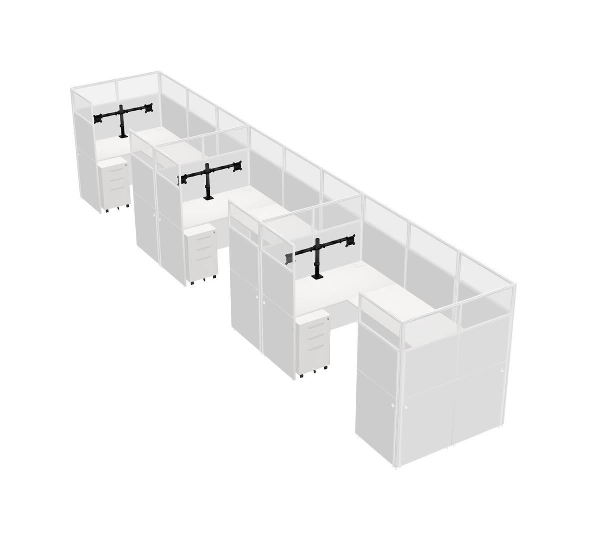 White U-shaped Panel System For 3 Person + Monitor Arm (double Arms) + Metal Mobile Drawers For 3 User(s)