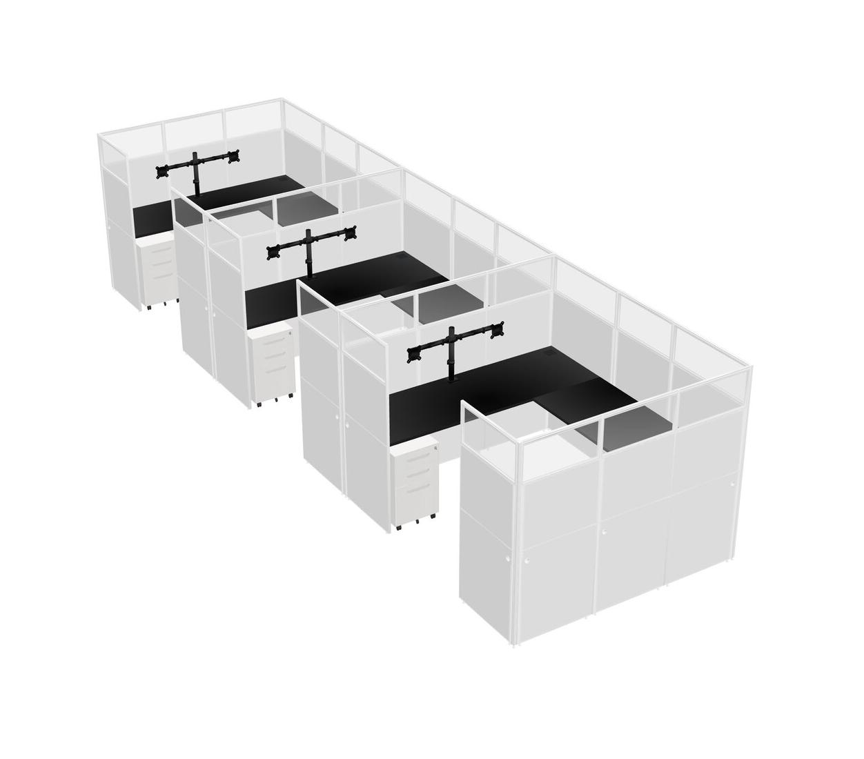 Black U-shaped Panel System For 3 Person + Monitor Arm (double Arms) + Metal Mobile Drawers For 3 User(s)