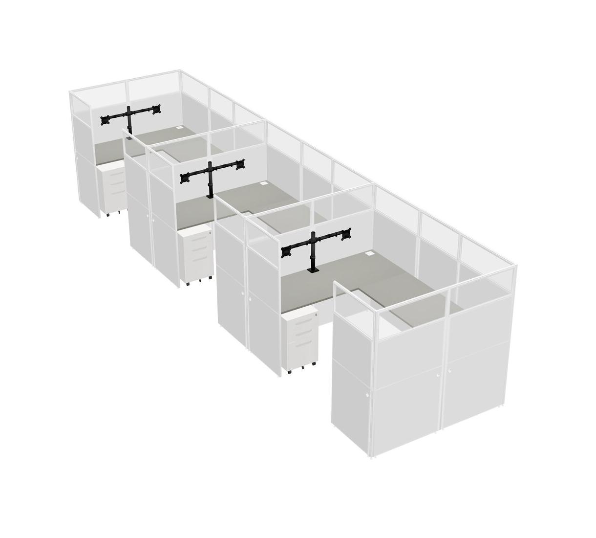 Grey Shadows U-shaped Panel System For 3 Person + Monitor Arm (double Arms) + Metal Mobile Drawers For 3 User(s)