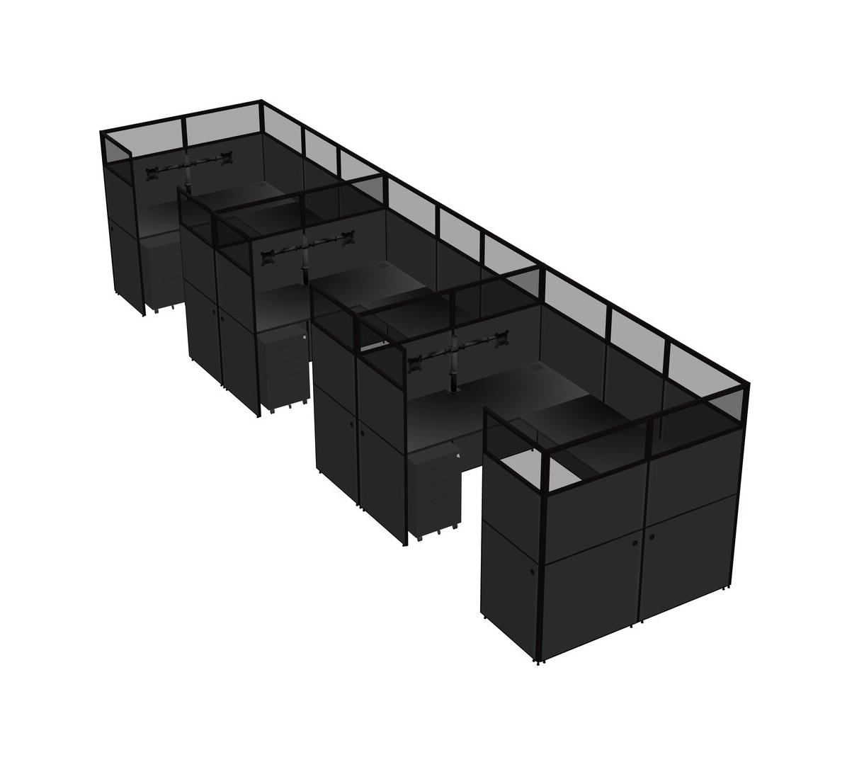 Black U-shaped Panel System For 3 Person + Monitor Arm (double Arms) + Metal Mobile Drawers For 3 User(s)
