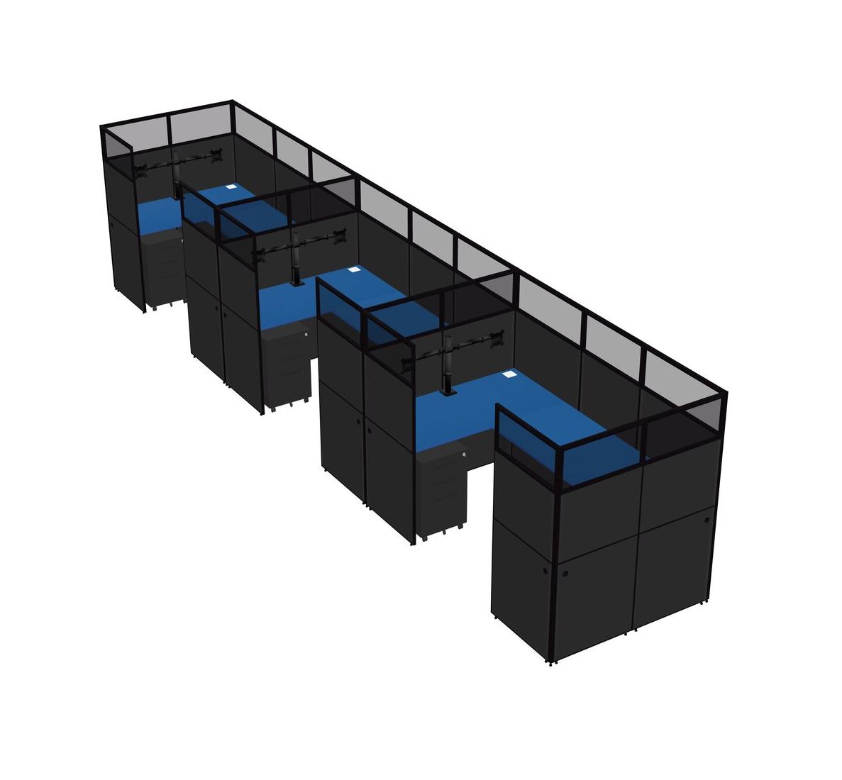 Prism Blue U-shaped Panel System For 3 Person + Monitor Arm (double Arms) + Metal Mobile Drawers For 3 User(s)