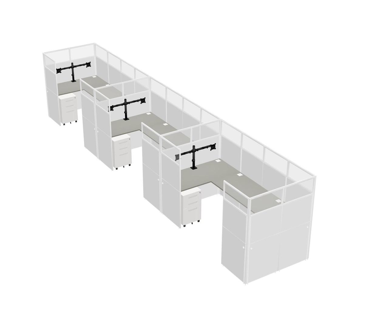 Grey Shadows U-shaped Panel System For 3 Person + Monitor Arm (double Arms) + Metal Mobile Drawers For 3 User(s)