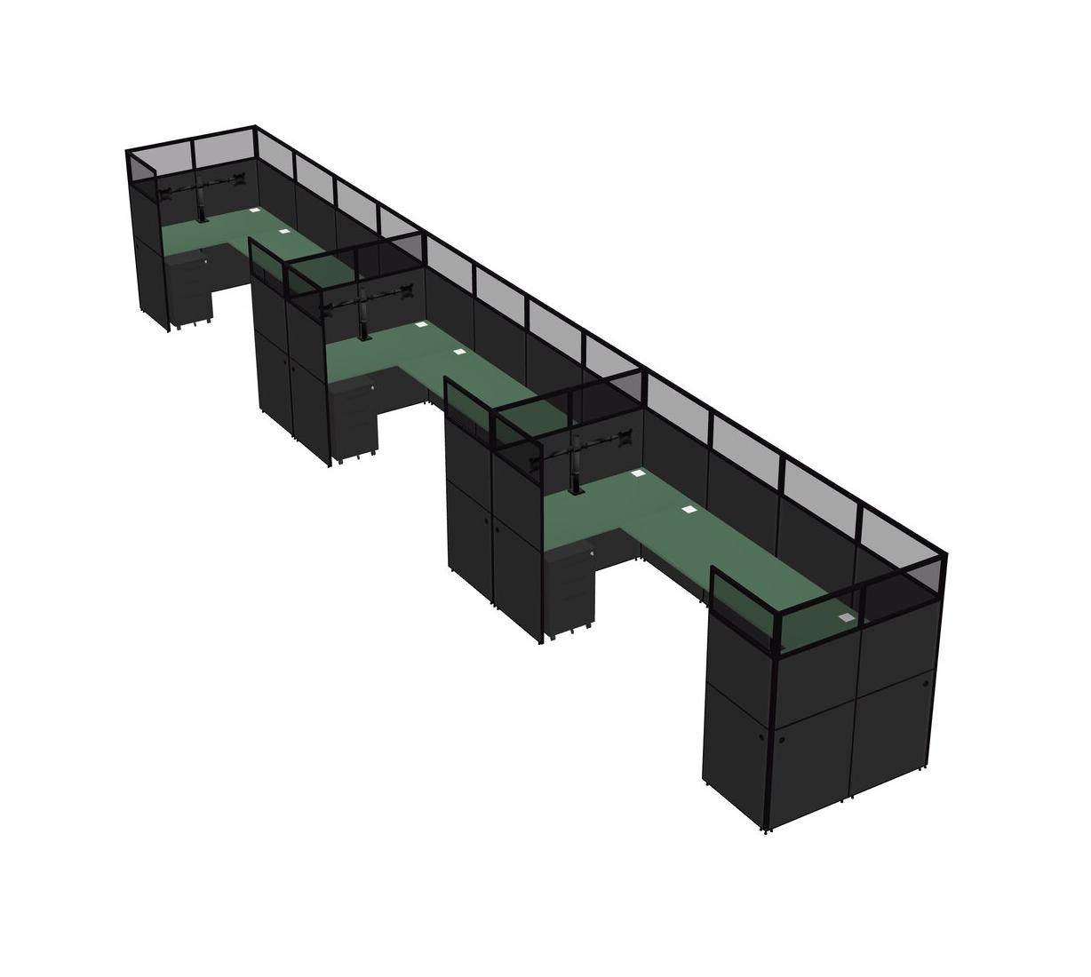Green U-shaped Panel System For 3 Person + Monitor Arm (double Arms) + Metal Mobile Drawers For 3 User(s)