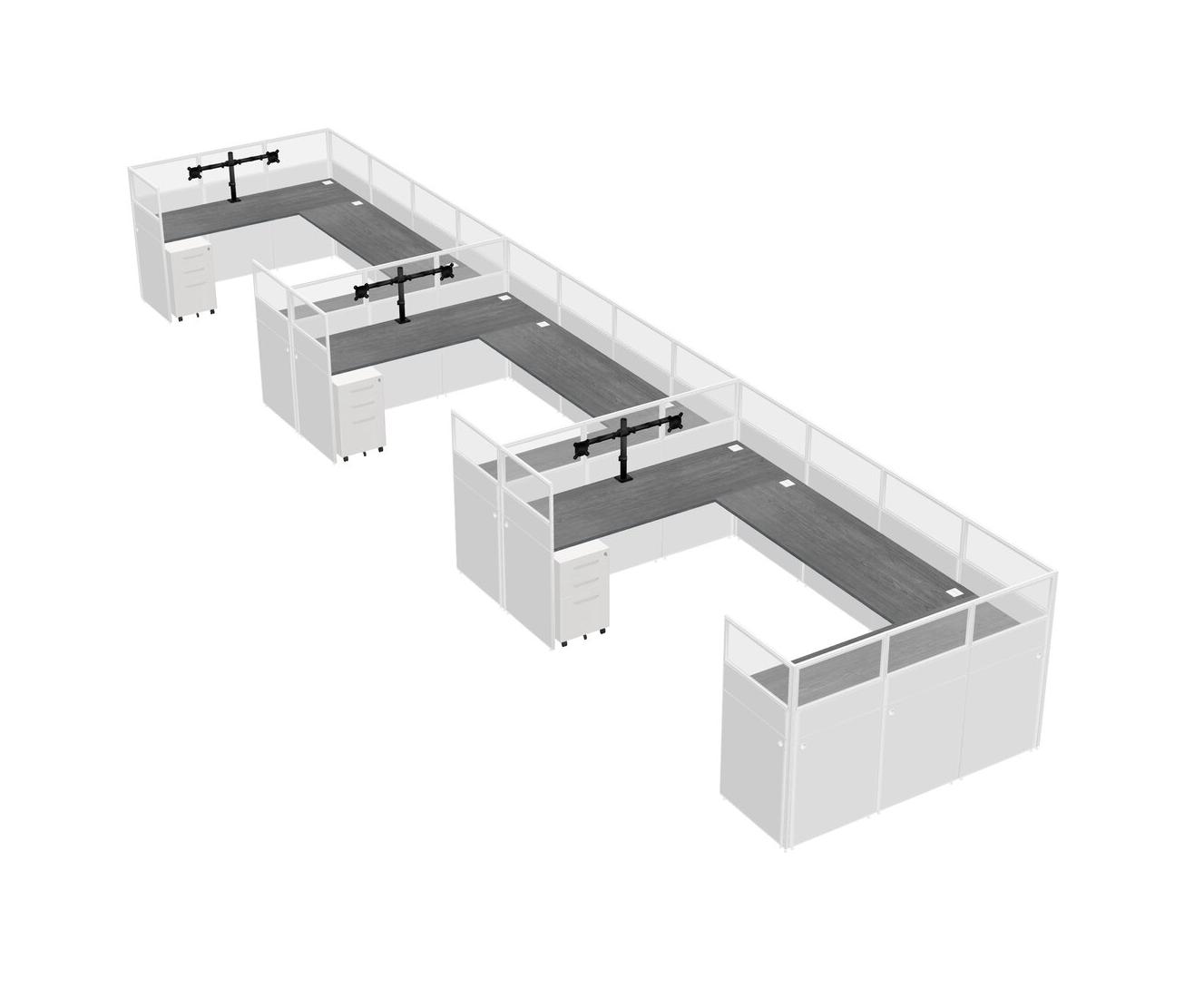 Grey U-shaped Panel System For 3 Person + Monitor Arm (double Arms) + Metal Mobile Drawers For 3 User(s)