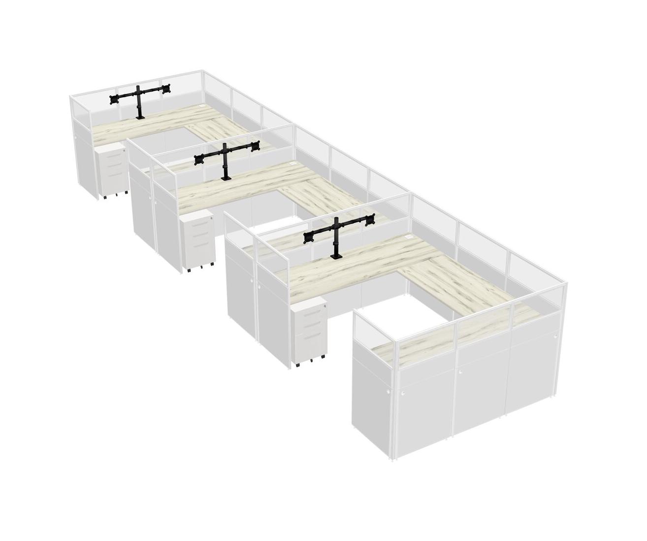 Heinne Holz U-shaped Panel System For 3 Person + Monitor Arm (double Arms) + Metal Mobile Drawers For 3 User(s)