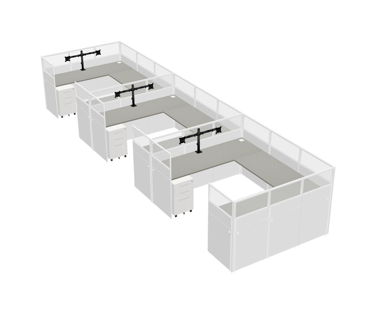 Grey Shadows U-shaped Panel System For 3 Person + Monitor Arm (double Arms) + Metal Mobile Drawers For 3 User(s)