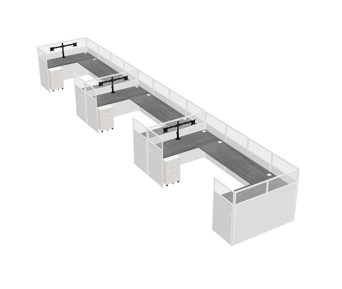 Grey U-shaped Panel System For 3 Person + Monitor Arm (double Arms) + Metal Mobile Drawers For 3 User(s)