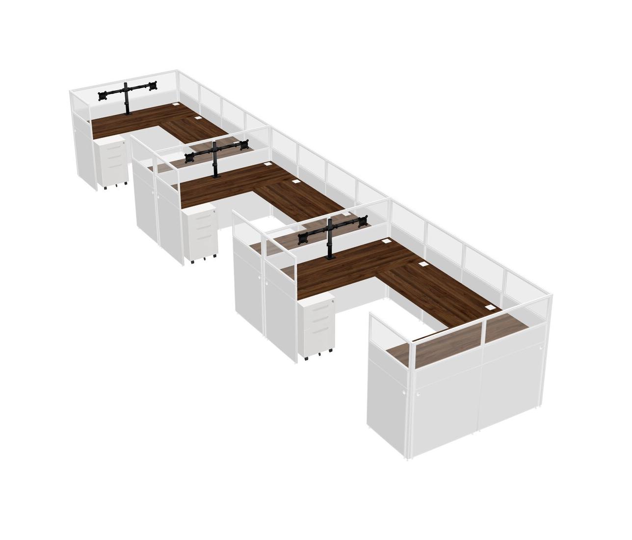Columbia Walnut U-shaped Panel System For 3 Person + Monitor Arm (double Arms) + Metal Mobile Drawers For 3 User(s)