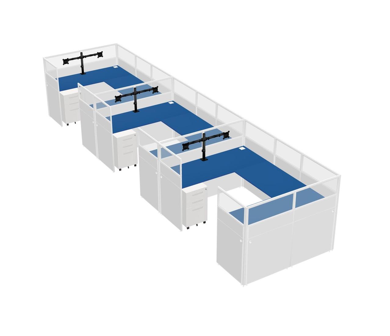 Prism Blue U-shaped Panel System For 3 Person + Monitor Arm (double Arms) + Metal Mobile Drawers For 3 User(s)