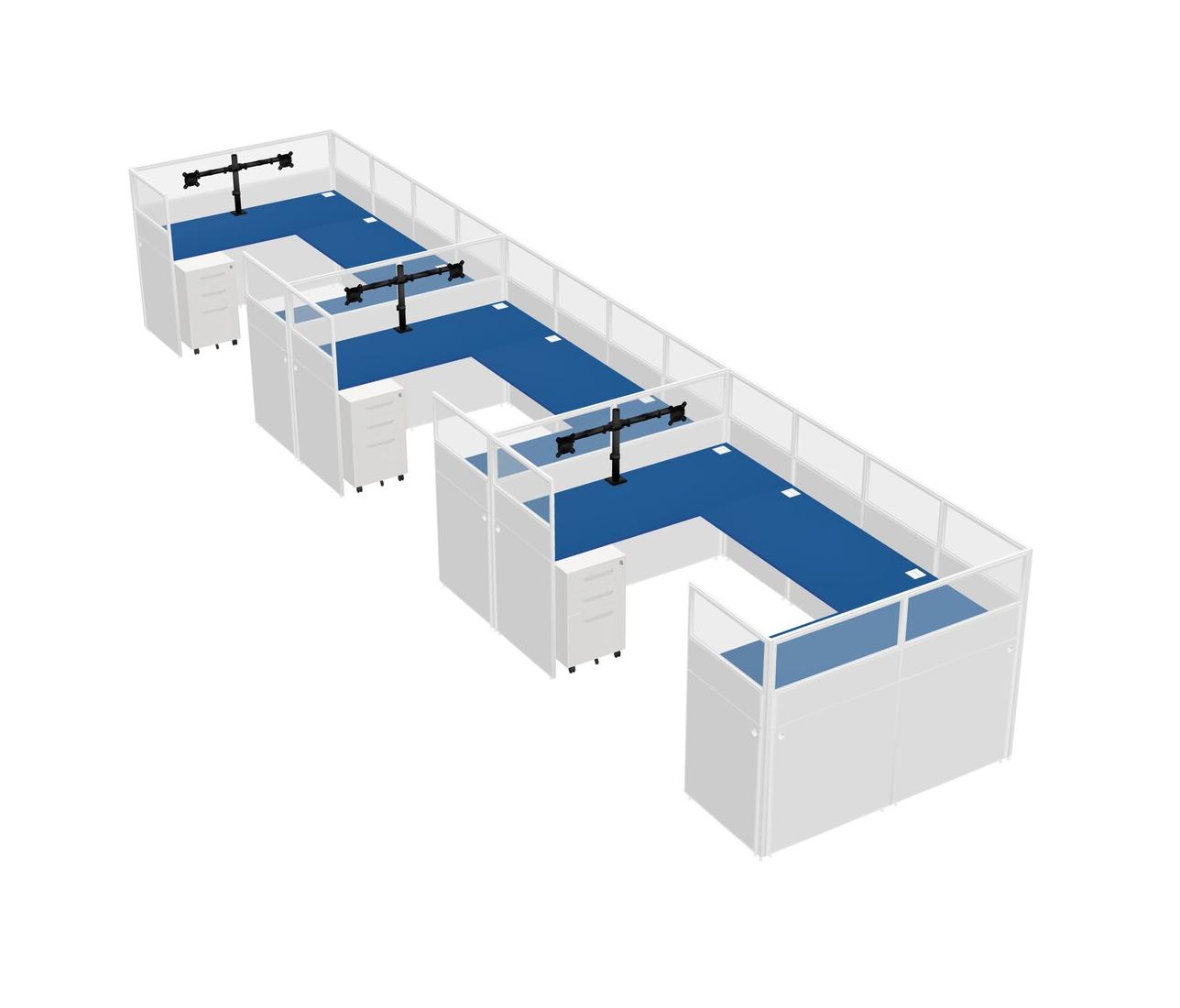 Prism Blue U-shaped Panel System For 3 Person + Monitor Arm (double Arms) + Metal Mobile Drawers For 3 User(s)