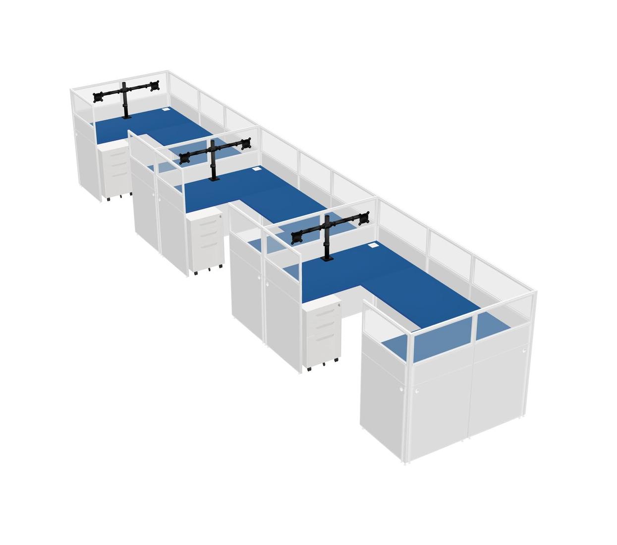 Prism Blue U-shaped Panel System For 3 Person + Monitor Arm (double Arms) + Metal Mobile Drawers For 3 User(s)