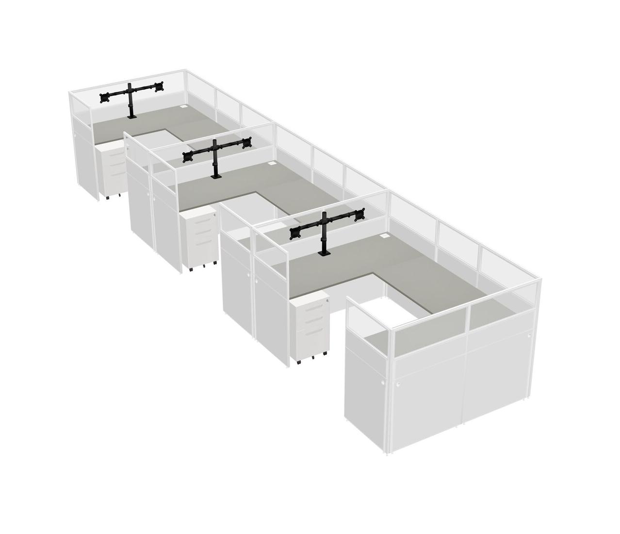 Grey Shadows U-shaped Panel System For 3 Person + Monitor Arm (double Arms) + Metal Mobile Drawers For 3 User(s)