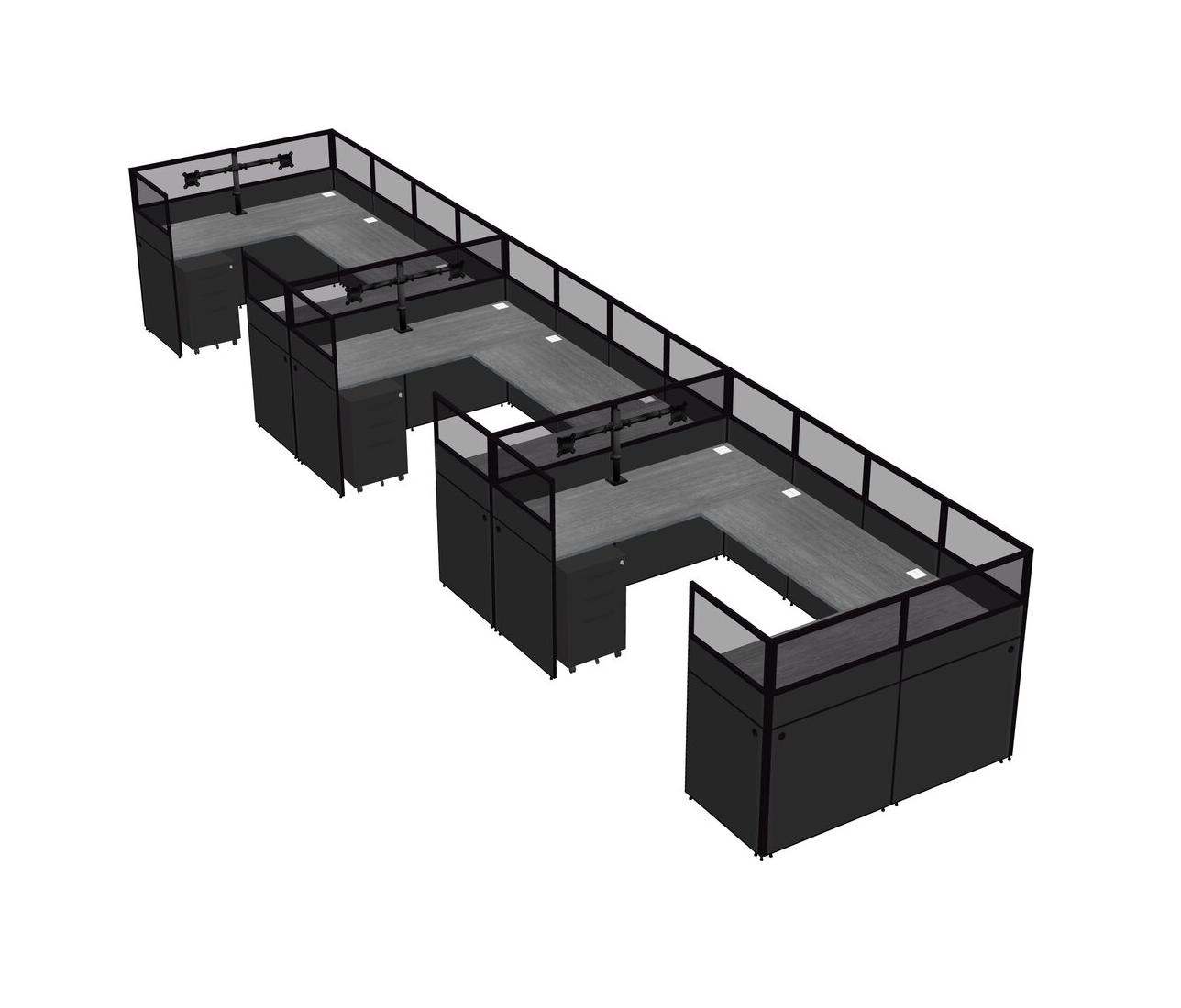 Grey U-shaped Panel System For 3 Person + Monitor Arm (double Arms) + Metal Mobile Drawers For 3 User(s)
