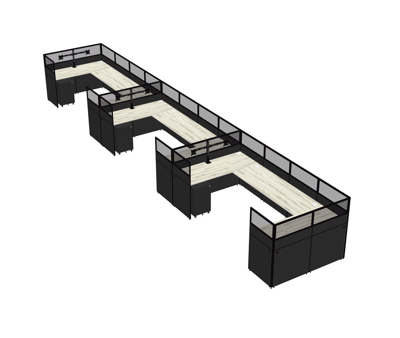 Heinne Holz U-shaped Panel System For 3 Person + Monitor Arm (double Arms) + Metal Mobile Drawers For 3 User(s)