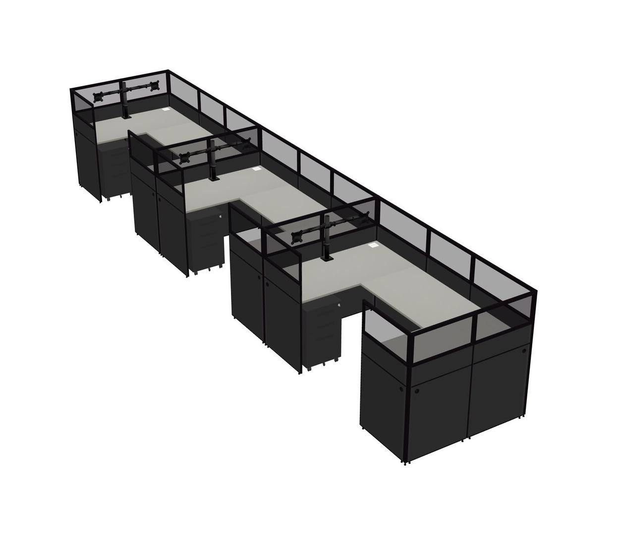 Grey Shadows U-shaped Panel System For 3 Person + Monitor Arm (double Arms) + Metal Mobile Drawers For 3 User(s)