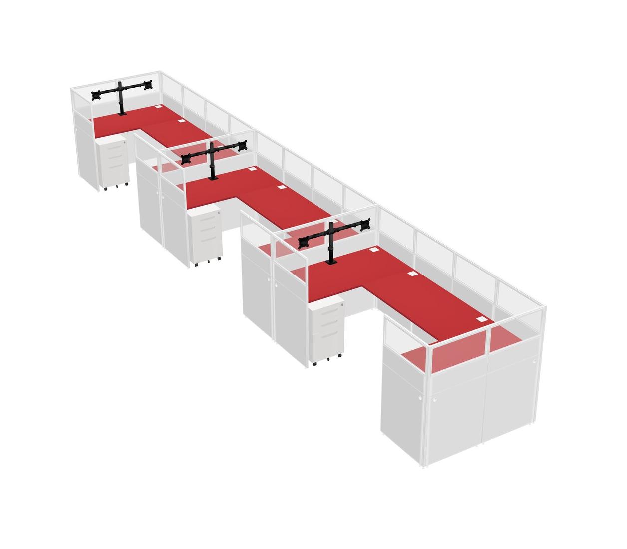 Prism Red U-shaped Panel System For 3 Person + Monitor Arm (double Arms) + Metal Mobile Drawers For 3 User(s)